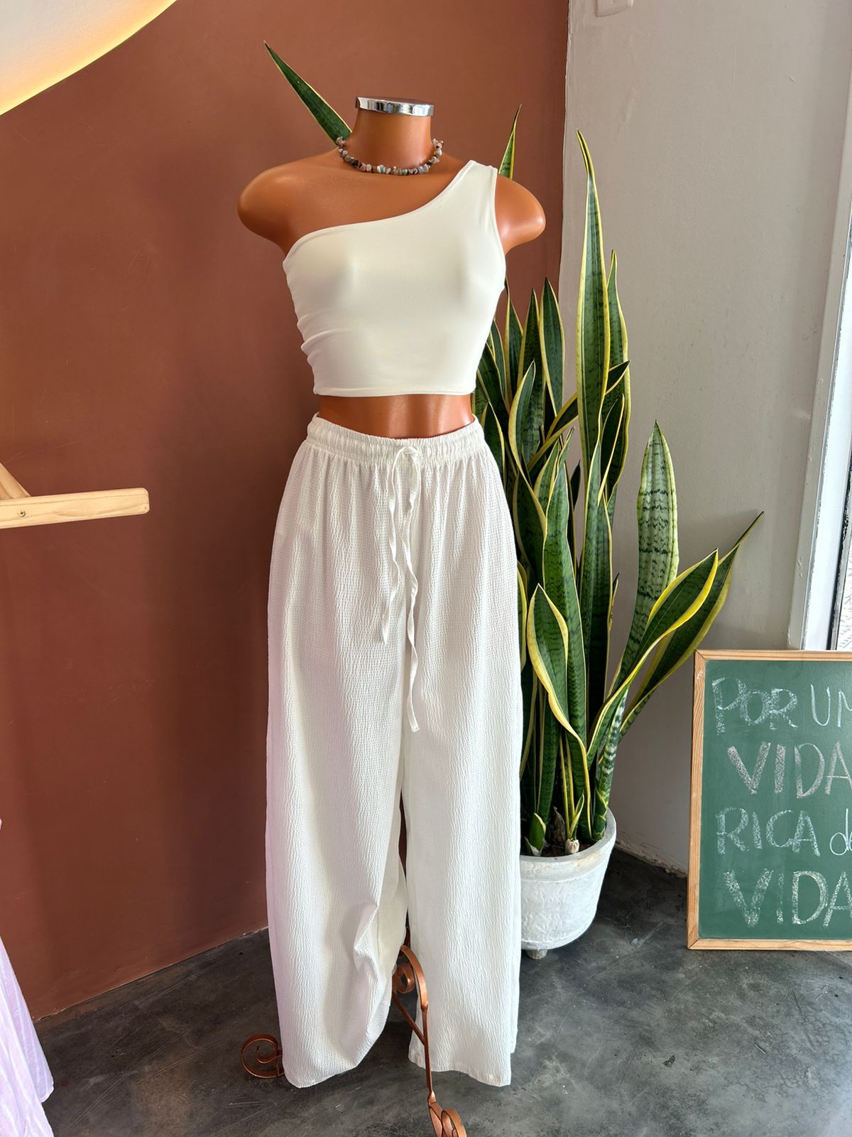 ✨ Calça Pantalona Texturizada Anarruga Lençois (Off White) ✨