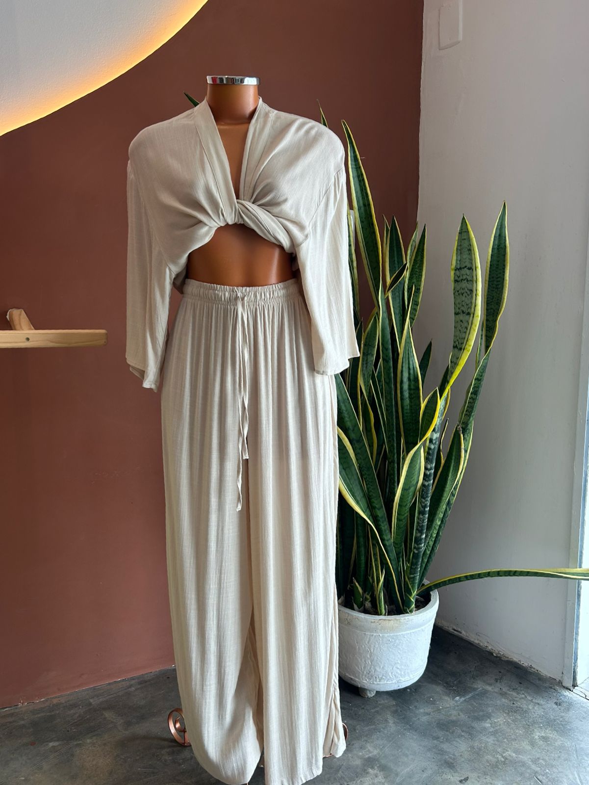 ✨ Calça Pantalona em Viscose – Marfim✨
