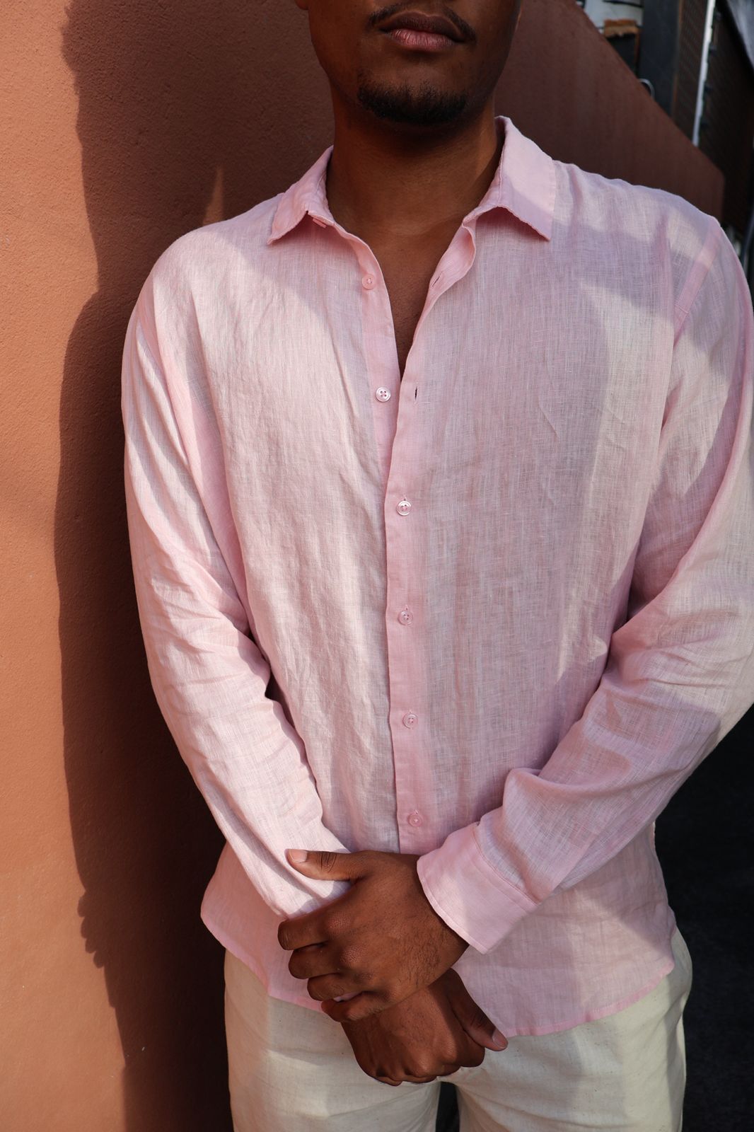 ✨ Camisa Manga Longa Linho Puro – Rosa Chá ✨