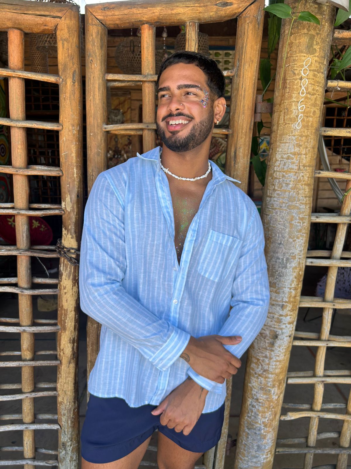 A Camisa Manga Longa Veraneio é a escolha perfeita para quem busca conforto, leveza e versatilidade nos dias mais quentes. Com padronagem listrada em branco e azul, traz um visual clássico e atemporal, fácil de combinar e sempre atual.