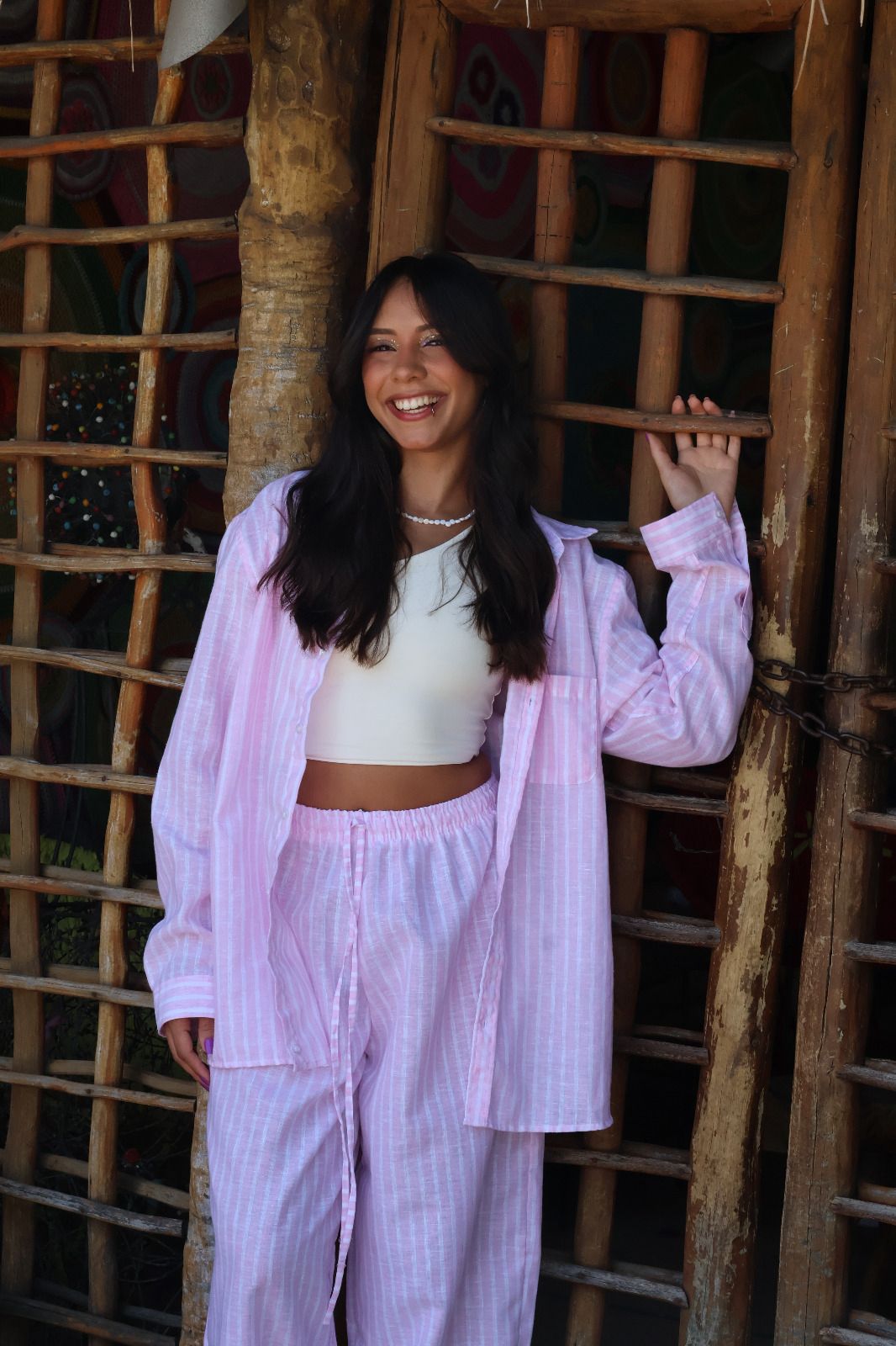 A Camisa Manga Longa Veraneio é a escolha perfeita para quem busca conforto, leveza e versatilidade nos dias mais quentes. Com padronagem listrada em branco e rosa, traz um visual clássico e atemporal, fácil de combinar e sempre atual.