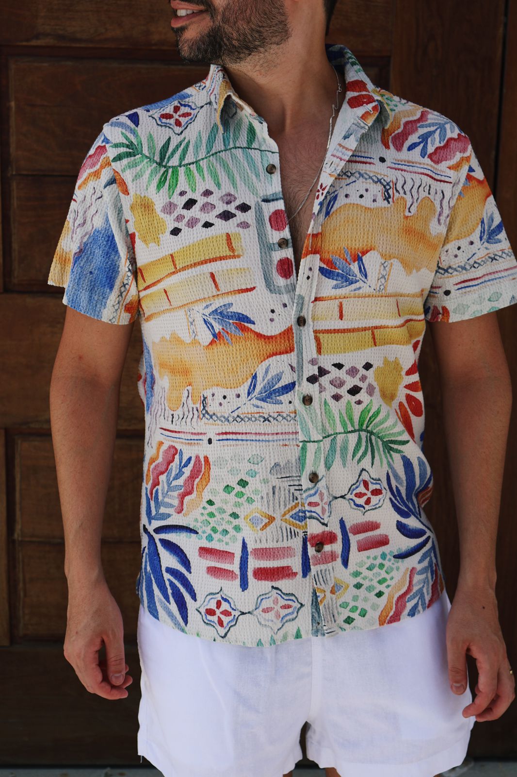 A camisa Anarruga - Estampa Aquarela de Verão une conforto, sofisticação e versatilidade no dia a dia. Feita em algodão texturizado com toque macio, ela tem aquele visual moderno e atemporal que combina com tudo — perfeita para usar aberta, fechada, com camiseta por baixo ou até como terceira peça em looks mais casuais.