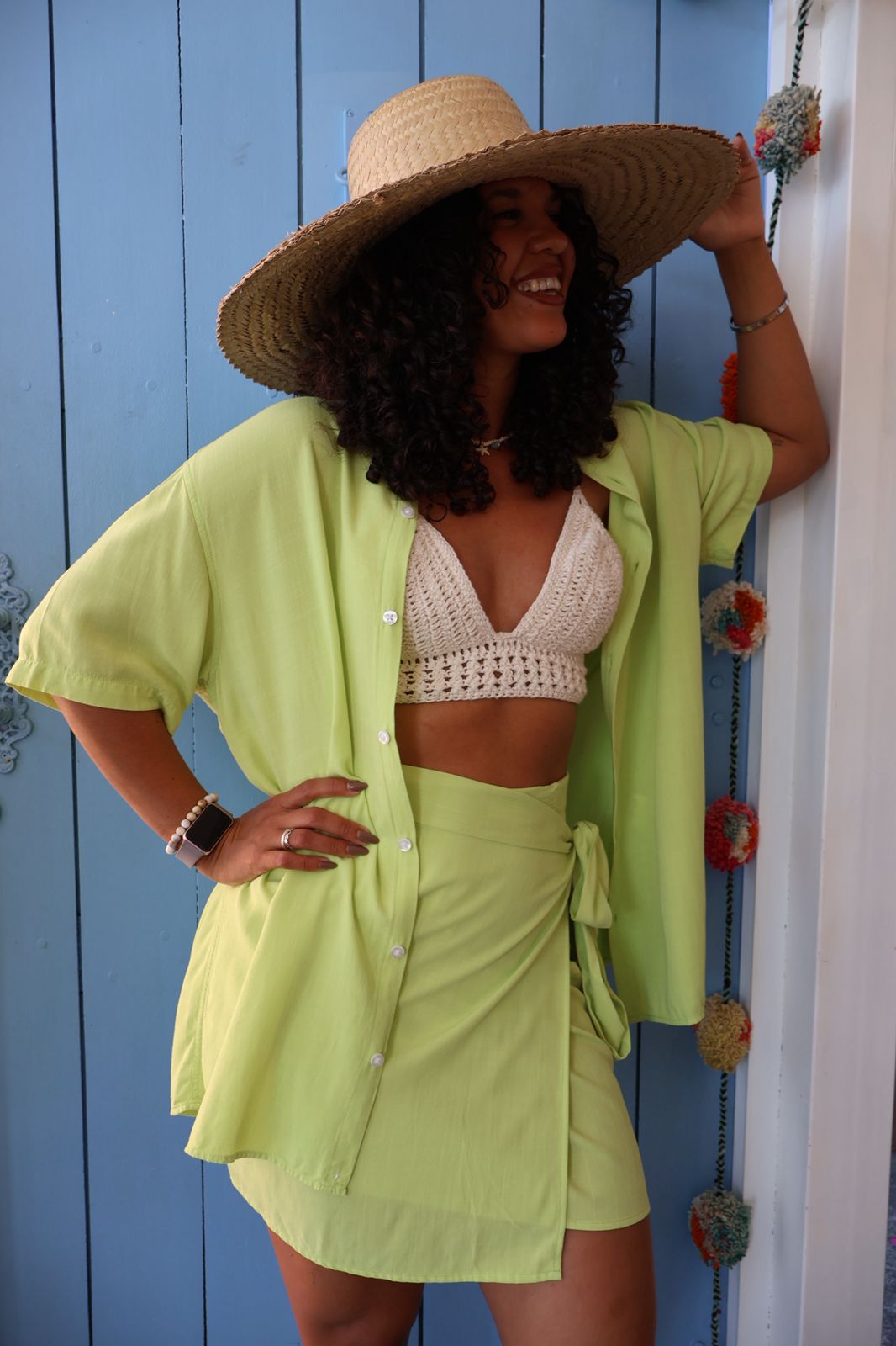 ✨ Camisa de Botão Manga Curta Unissex em Viscose – Verde Lima ✨