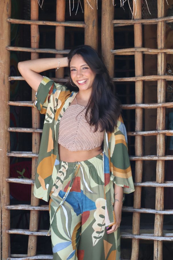 A terceira peça que transforma qualquer look em algo especial. Nosso kimono é leve, versátil e estiloso, perfeito para quem busca praticidade com um toque de sofisticação.
