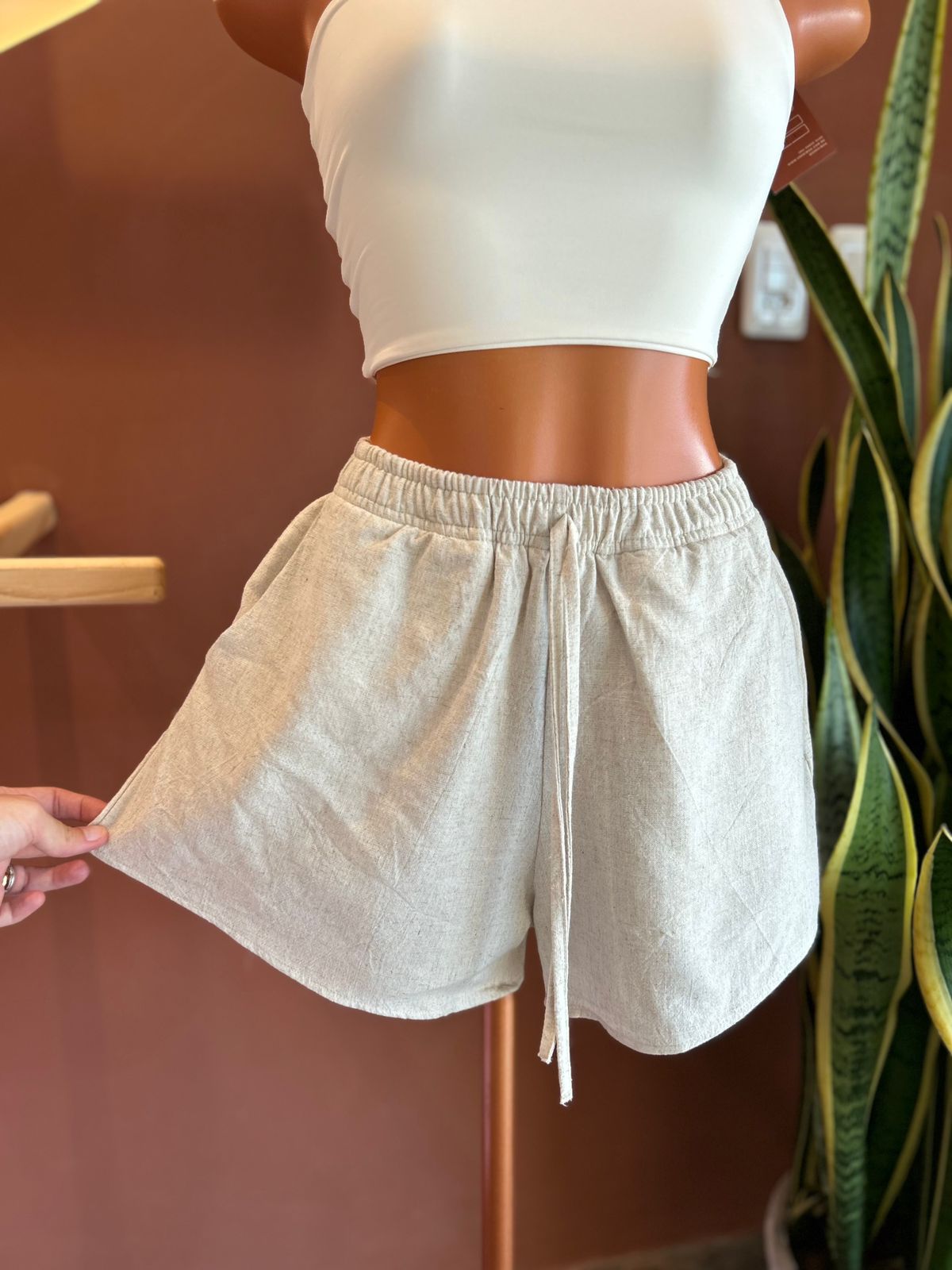✨ Short Acinturado Soltinho em viscolinho – cor areia clara (cru/natural) ✨ ✨