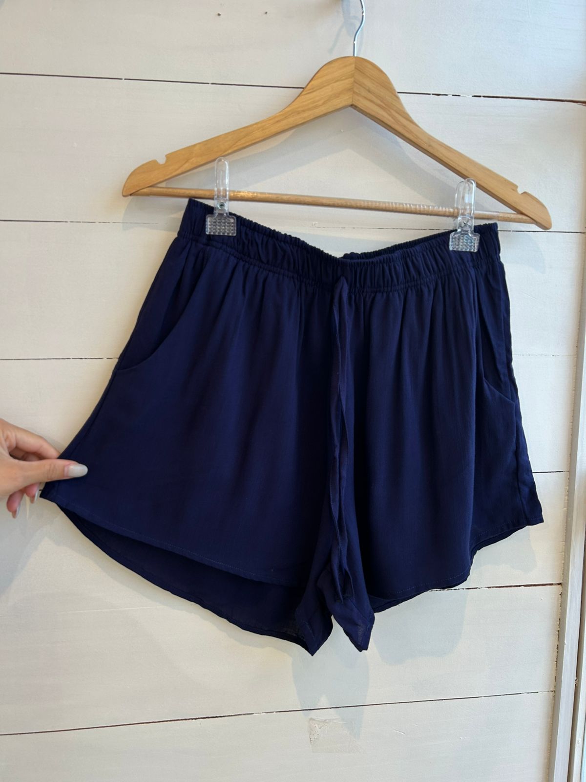 ✨ Short Acinturado Soltinho em Viscose com Bolsos – Azul Marinho✨